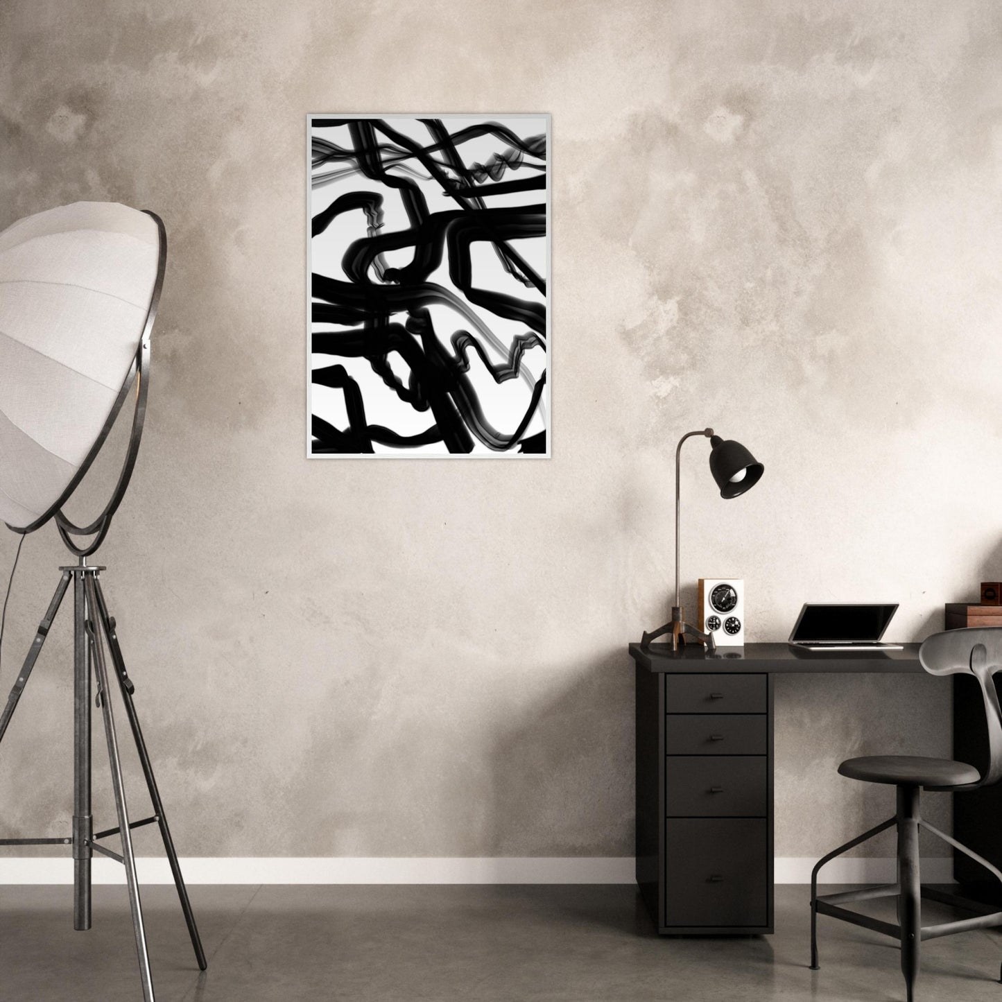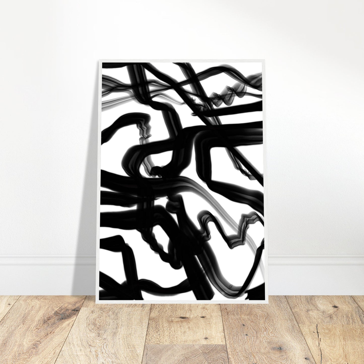 In this monochrome abstract print, harmony reigns supreme as shades of black and white intertwine in a delicate dance upon the canvas. Without the interruption of a dividing line, the composition flows freely, inviting viewers to immerse themselves in its tranquil beauty. Subtle gradients transition seamlessly, blurring the boundaries between light and shadow with graceful elegance. Every brushstroke whispers of movement and rhythm, creating a sense of dynamic energy that pulses beneath the surface. The absence of colour amplifies the impact of each subtle variation, drawing the eye deeper into the depths of the artwork. It is a testament to the power of simplicity, where the purity of form and the interplay of light and dark evoke a timeless sense of awe and wonder.